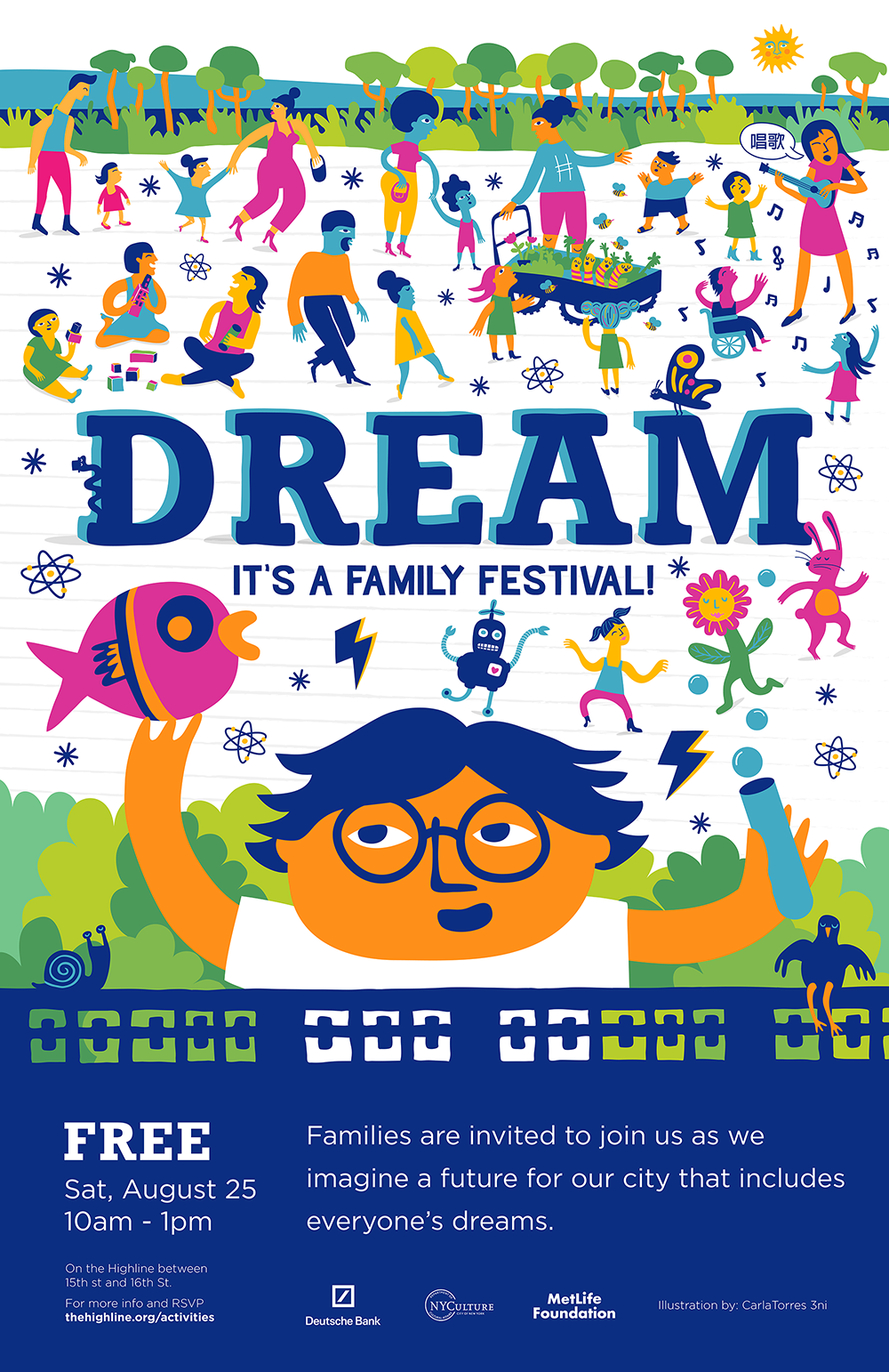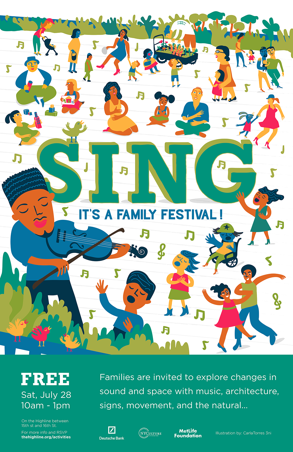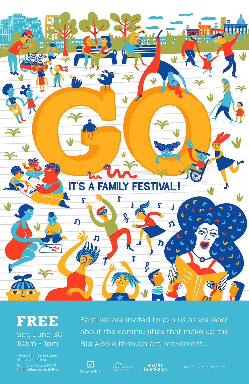 These series of posters were created to invite the public to the Family Programs Events held this summer at the High Line Bridge Park. I enjoy very much working on this project, especially drawing the little passerby people.